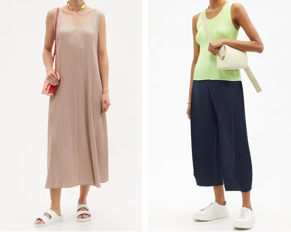 PLEATS PLEASE ISSEY MIYAKE Knotted-strap technical-pleated dress 裸色洋裝,背後有小心機