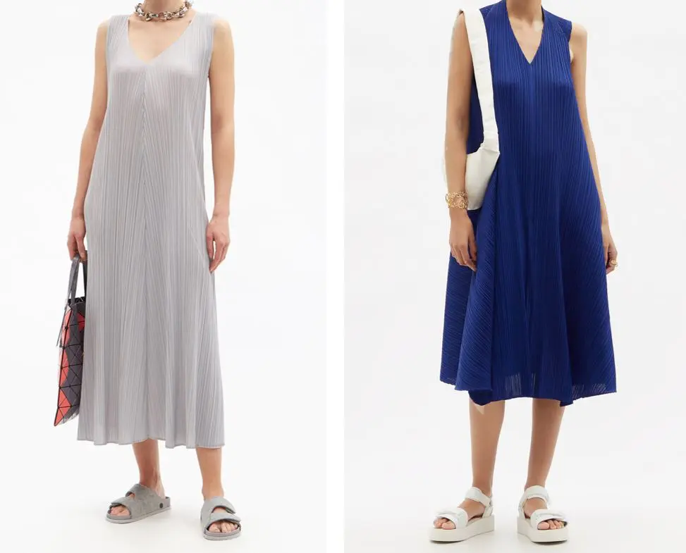 PLEATS PLEASE ISSEY MIYAKE V-neck technical-pleated longline dress 淺灰色洋裝新款,定價蠻不錯的又打折