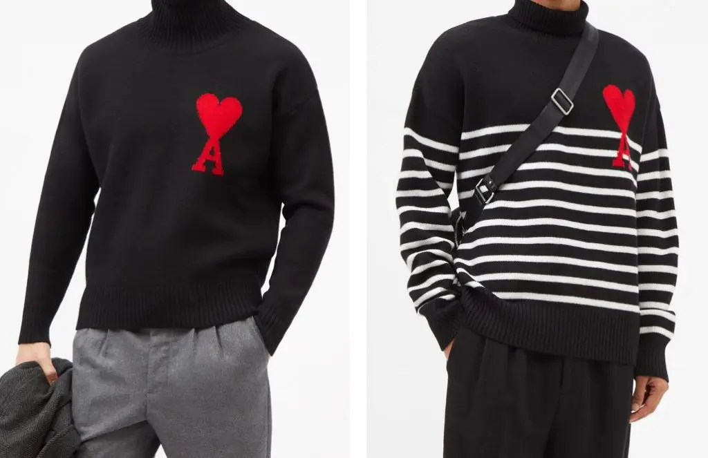 AMI Ami de Cœur-intarsia striped wool sweater 條紋大愛心高領毛衣