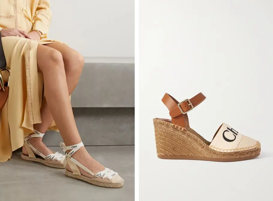 CHLOÉ Woody leather and logo-print canvas espadrille wedges 楔型鞋7折還有零碼