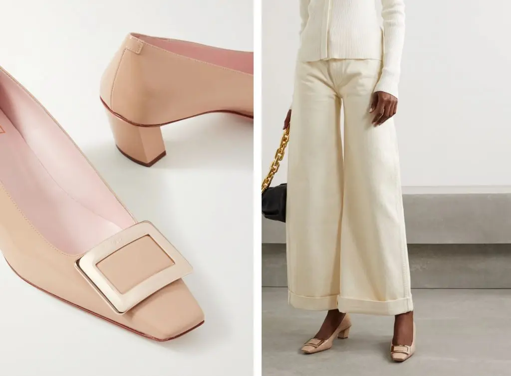 ROGER VIVIER Decollete Belle Vivier embellished patent-leather pumps 裸色方框跟鞋7折還有39以上