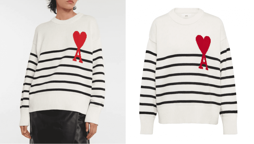AMI PARIS Ami de Cœur cotton and wool sweater 條文款愛心套頭Bug價€ 305歐元約台幣NT$9,635,原價要€ 360(這件沒打折)