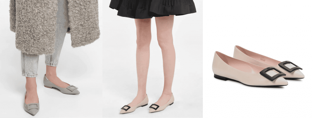 ROGER VIVIER Gommettine leather ballet flats 白色黑框小尖頭