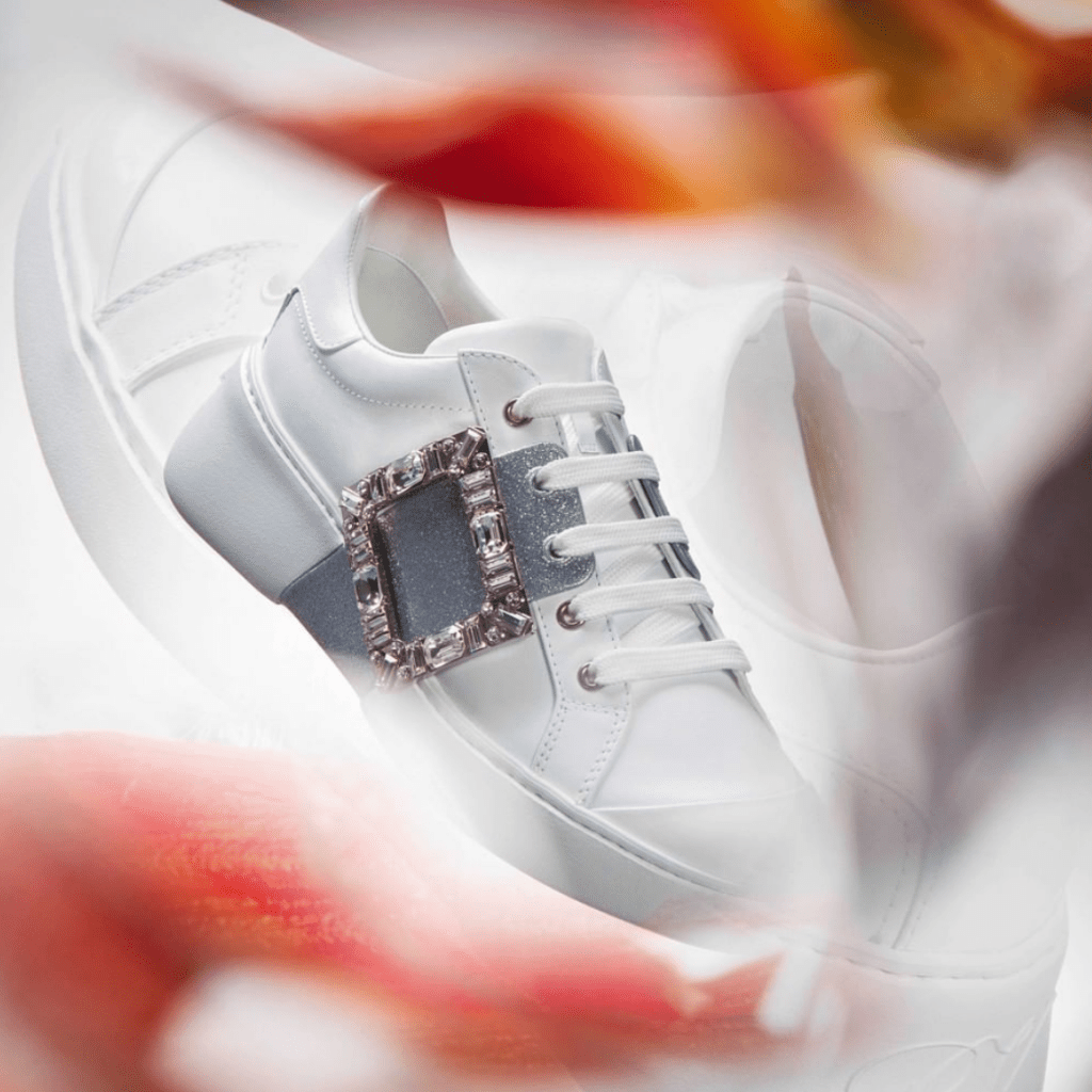 ROGER VIVIER Viv’ Skate leather sneakers 銀色水鑽款
