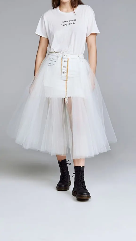 UNRAVEL Denim and tulle skirt 牛仔白紗裙中長版