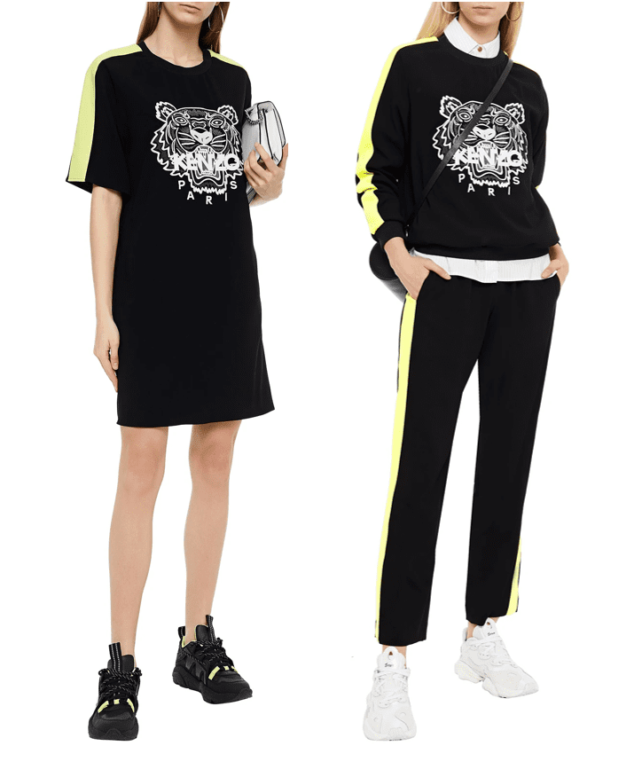 KENZO Embroidered striped crepe mini dress 黑色老虎洋裝3折