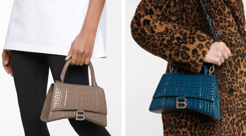 BALENCIAGA Hourglass Small leather shoulder bag 奶茶色小款鱷魚紋沙漏包7折