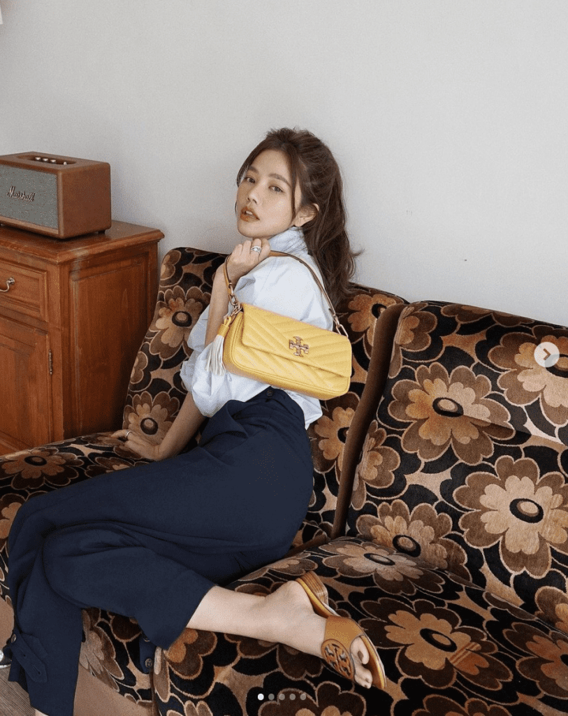 古力娜扎同款Tory Burch Eleanor T-Medallion shoulder bag 棕色小款,折扣後NT$16,266 (台灣定價NT$25,900) 約台灣63折
