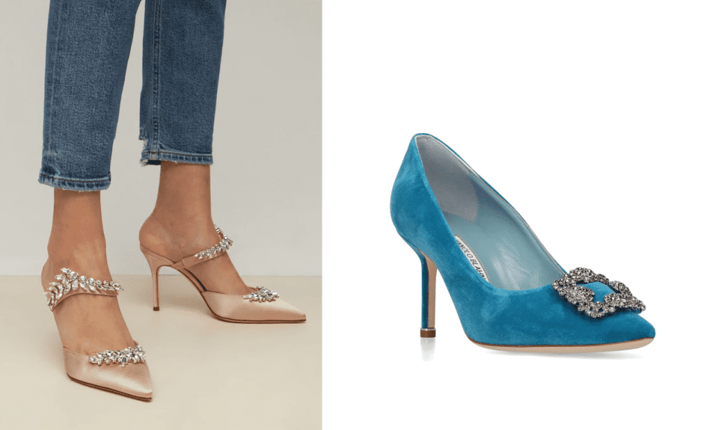 MANOLO BLAHNIK 70MM HANGISI VELVET PUMPS 藍色絨布水鑽跟鞋還有尺寸
