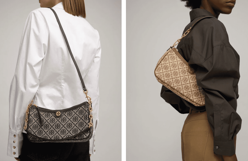 TORY BURCH T MONOGRAM JACQUARD SHOULDER BAG 帆布腋下包焦糖色