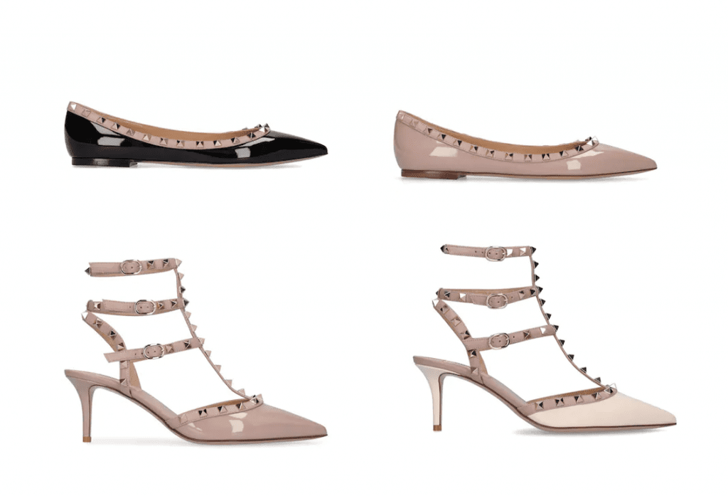 VALENTINO GARAVANI 10MM ROCKSTUD PATENT LEATHER FLATS 裸粉色平底鉚釘鞋7折
