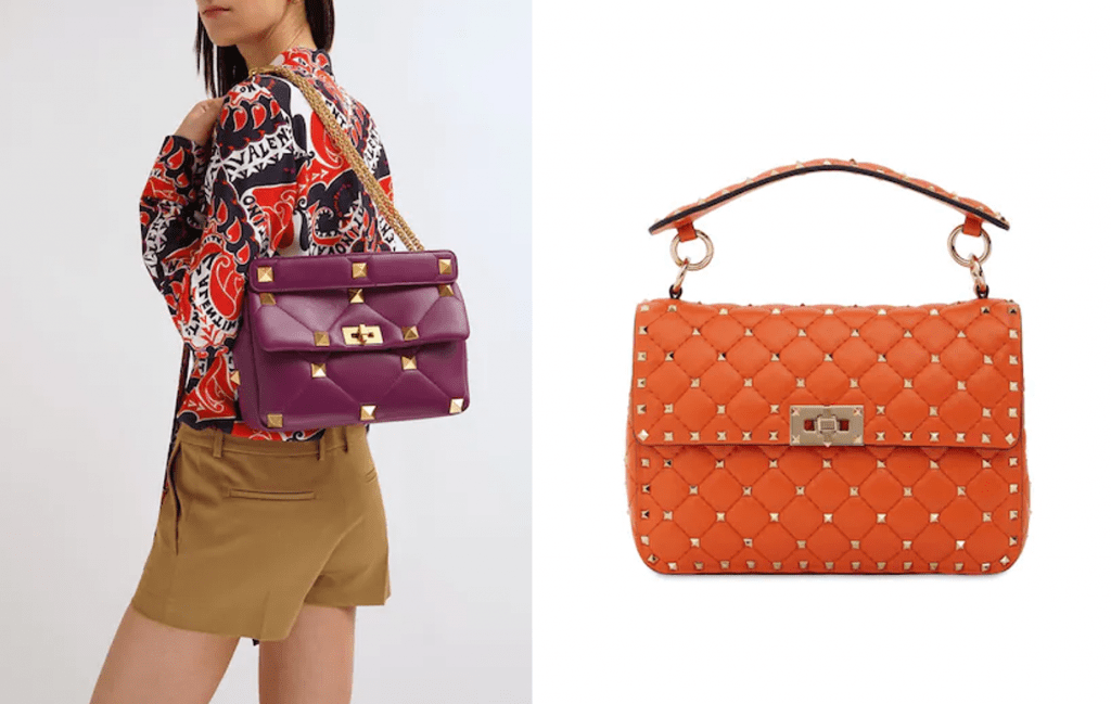 VALENTINO GARAVANI SMALL SPIKE LEATHER SHOULDER BAG 橘色小款鉚釘包7折