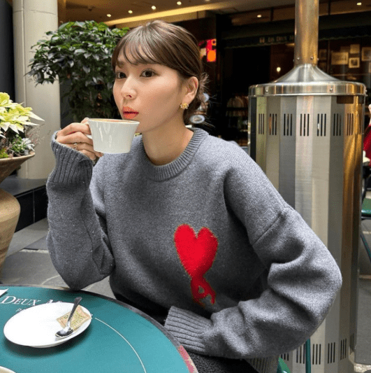 AMI De Coeur Intarsia-Wool Jumper 新款灰色大愛心毛衣