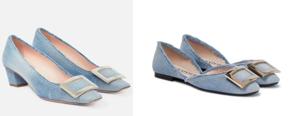 ROGER VIVIER Belle Vivier denim pumps 丹寧款跟鞋也很受歡迎,湊一下可以折€200歐元有尺寸快結帳吧