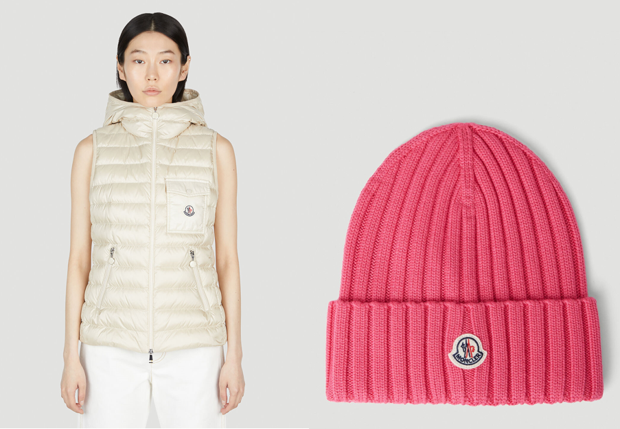 MONCLER Logo Patch Beanie Hat 粉色毛線帽61折