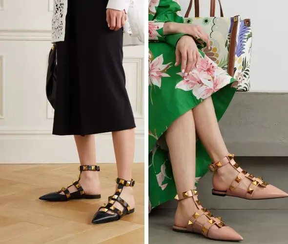 Valentino Garavani Roman Stud leather point-toe flats 裸色鉚釘平底鞋也是好搭的顏色 :